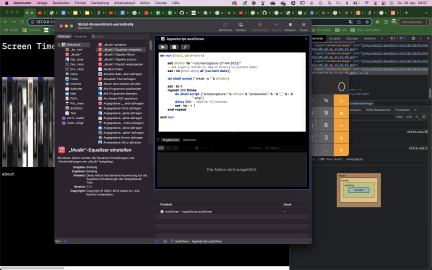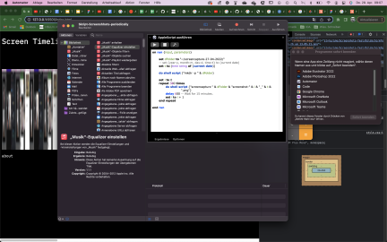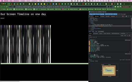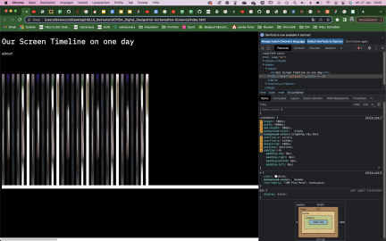 Our Laptops took screenshots of whatever we were doing every 10 minutes for 24 hours. This task was was automated with a Windows app for user1 and an Apple automator Script for user2. The screenshots are squeezed to a line of information. The intent of this project is to show what we are doing on our laptops, and give a glimpse of our daily screen time of working days.
